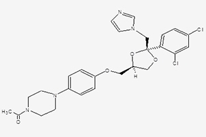 | Chemical name: | cis-1-Acetyl-4-(4-((2-(2,4-dichlorophenyl)-2-(1H-imidazol-1-ylmethyl)-1,3-dioxolan-4-yl)methoxy)phenyl)piperazine |