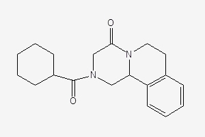 | Chemical name: | 2- Cyclohexyl-carbonyl-1,3,4,6,7,11b-hexahydro-4H-pyrazine(2,1-a)isoquinoline-4-one |